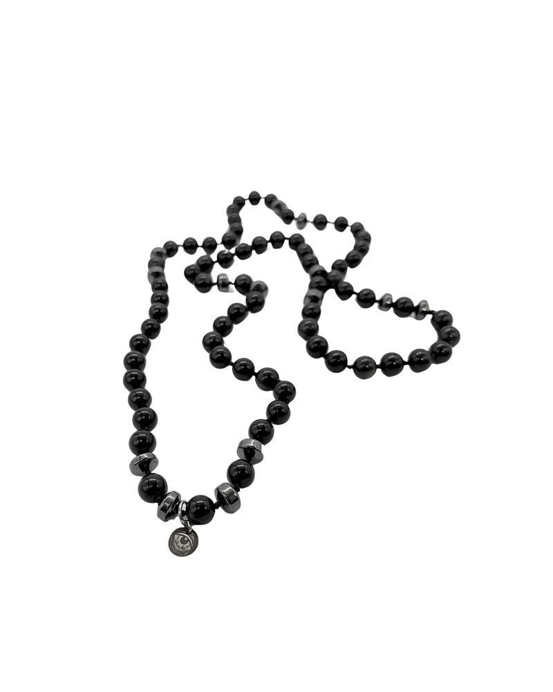 Oscuro, pulido y profundamente protector. Este collar anudado a mano está confeccionado con obsidiana negra, una piedra milenaria usada en rituales de introspección y sanación energética. No es solo un accesorio: es un canal de conexión con tu centro, una barrera contra energías densas y un espejo que refleja lo que debes transformar.